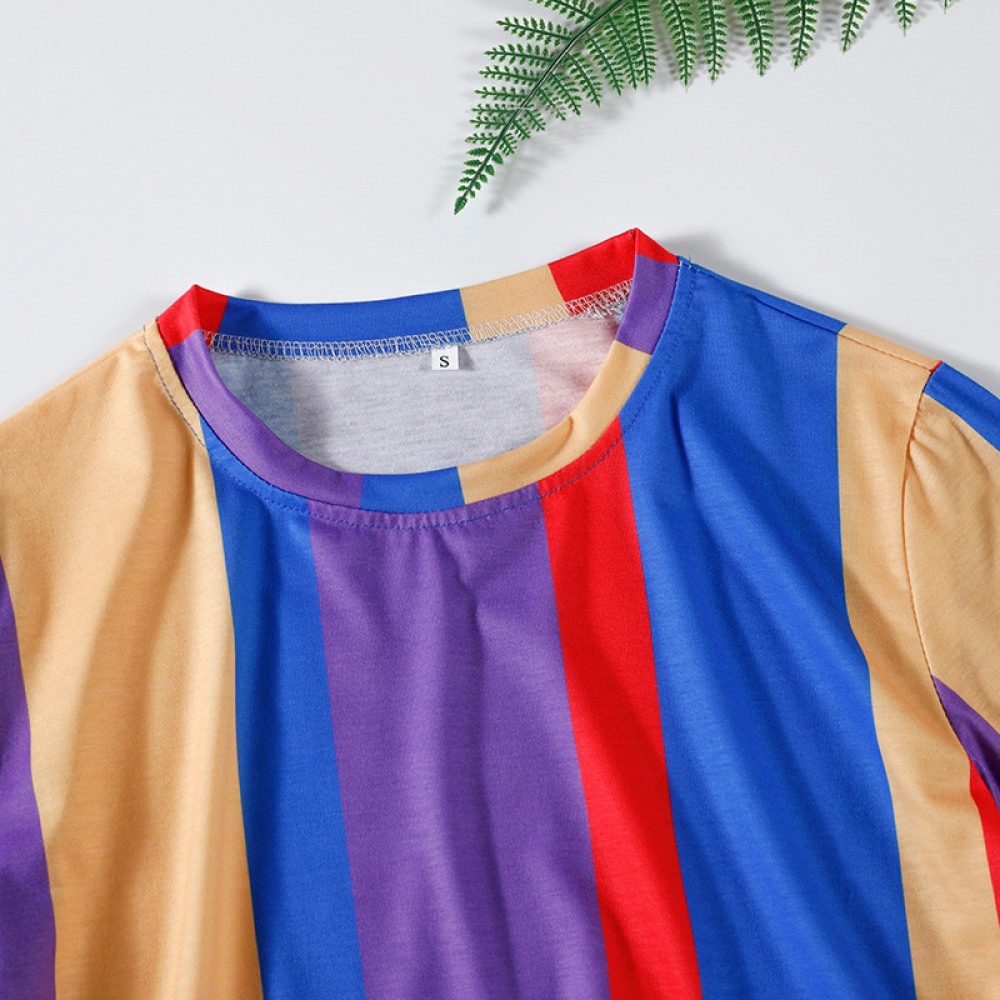 Round Neck Short Sleeve Knitted Sweater Women's Pleated Waist Slim T-Shirt Top