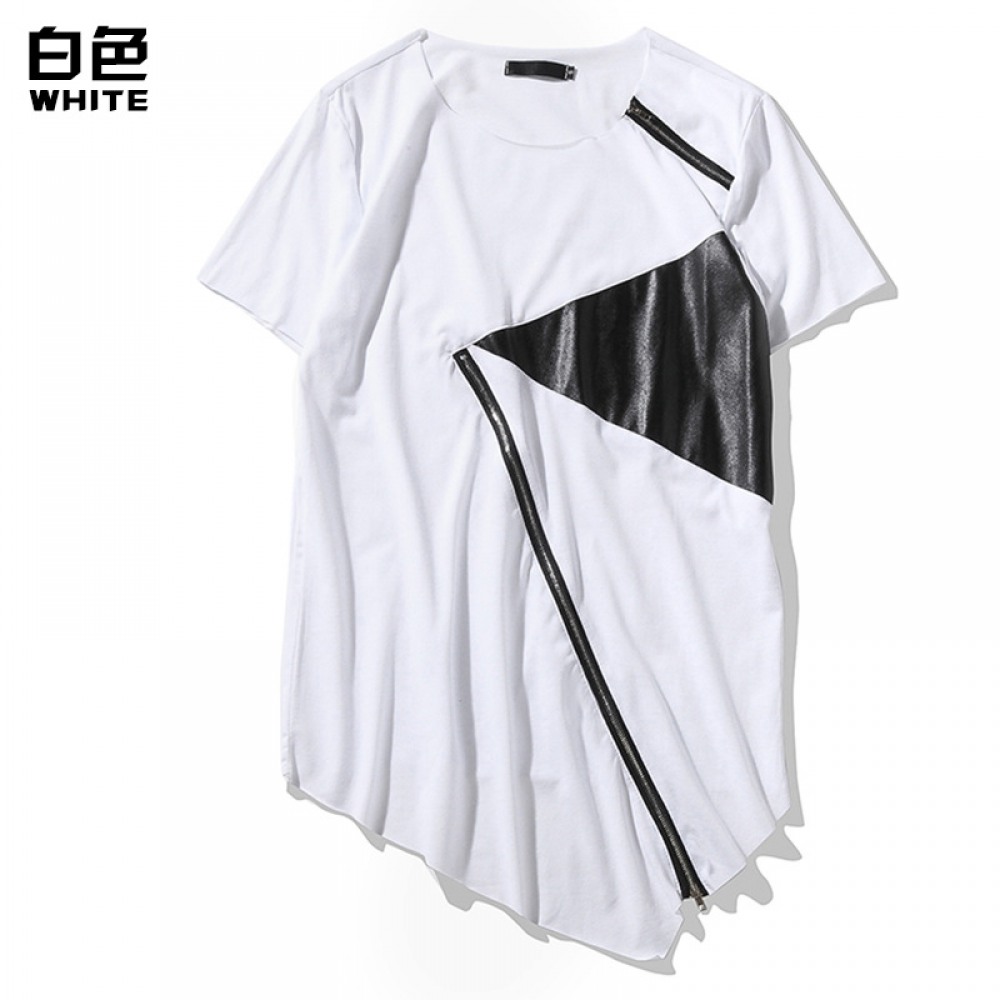 Flat Summer New Men's High Street Hip-Hop Round Neck Fashion Personality Hem Short-Sleeved T-Shirt