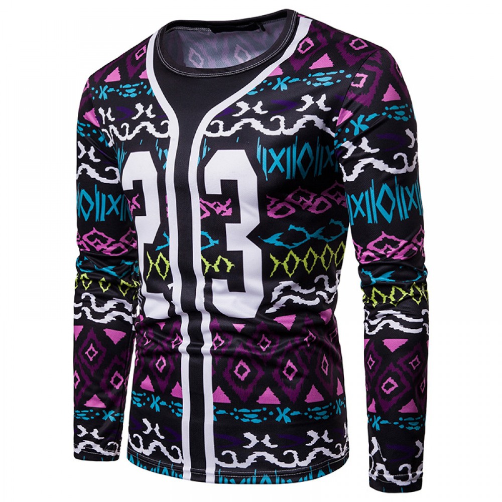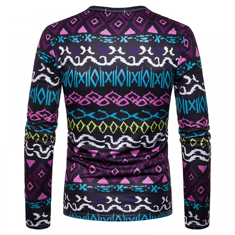 New Men's Large Size 3D Digital Classical Pattern Printing High Neck Long Sleeve T-Shirt Bottoming Shirt