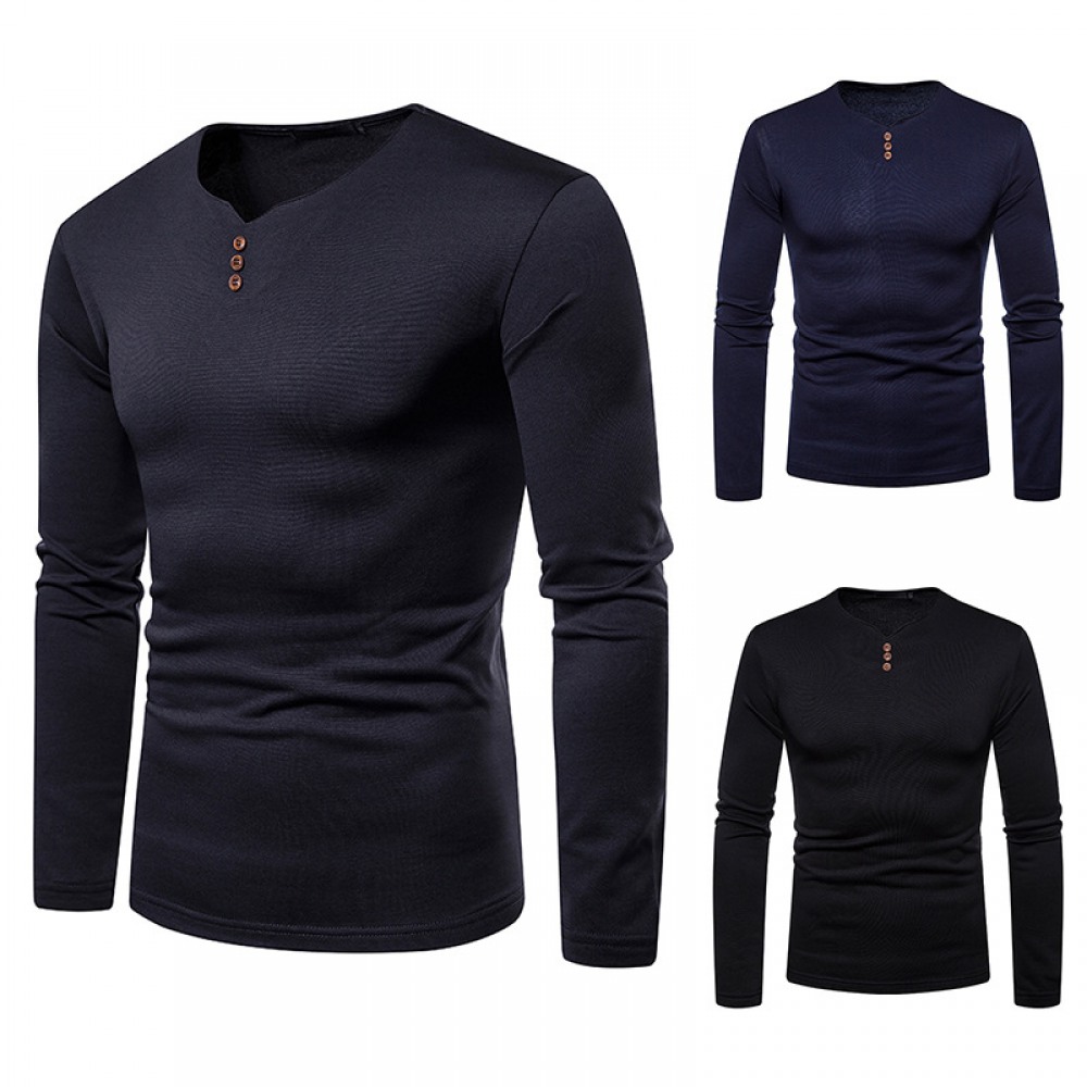 Men's Plus Size Plus Velvet Warm V-Neck Long-Sleeved T-Shirt Base Shirt