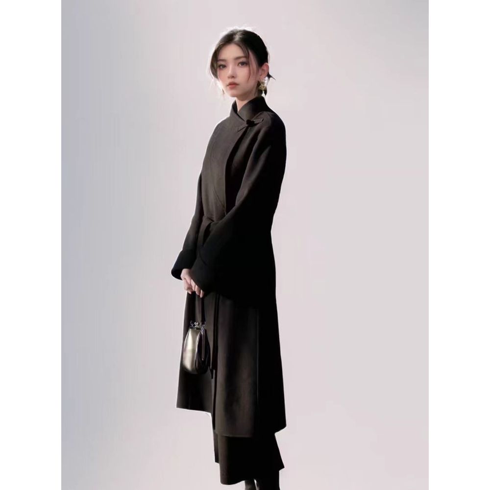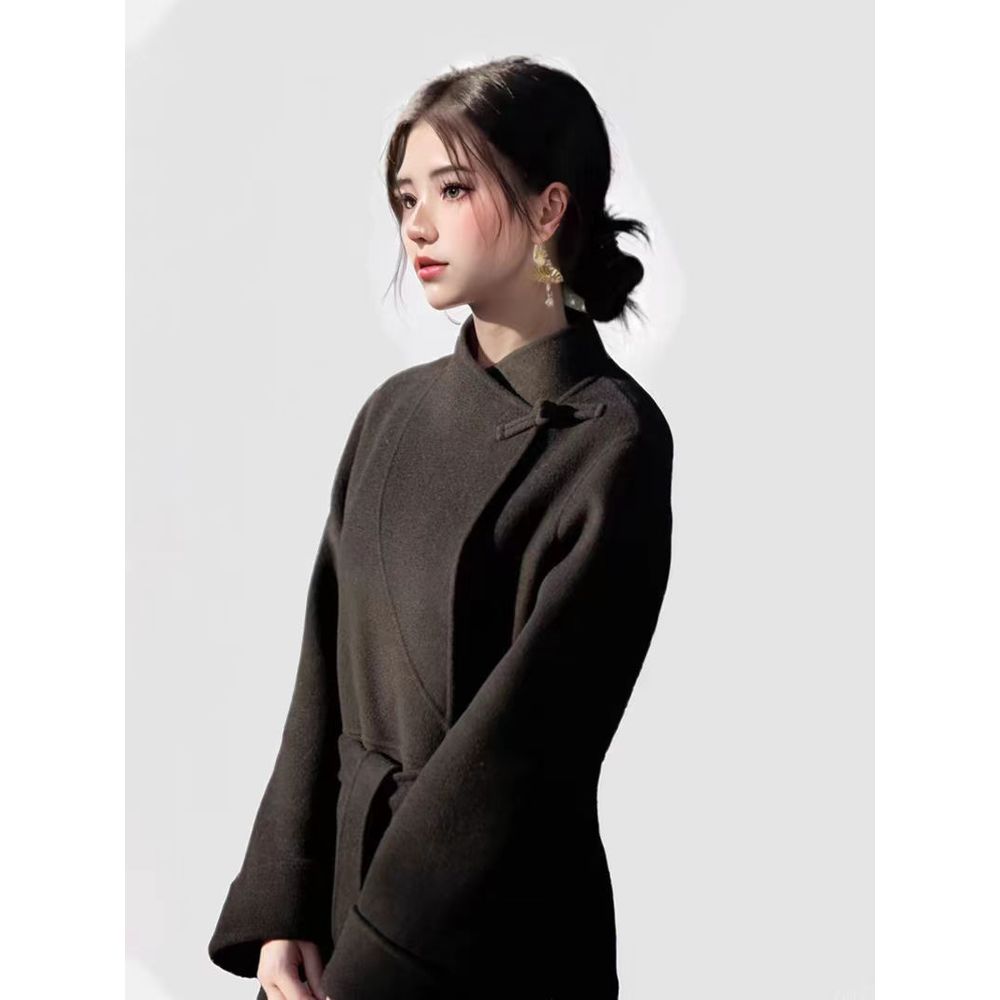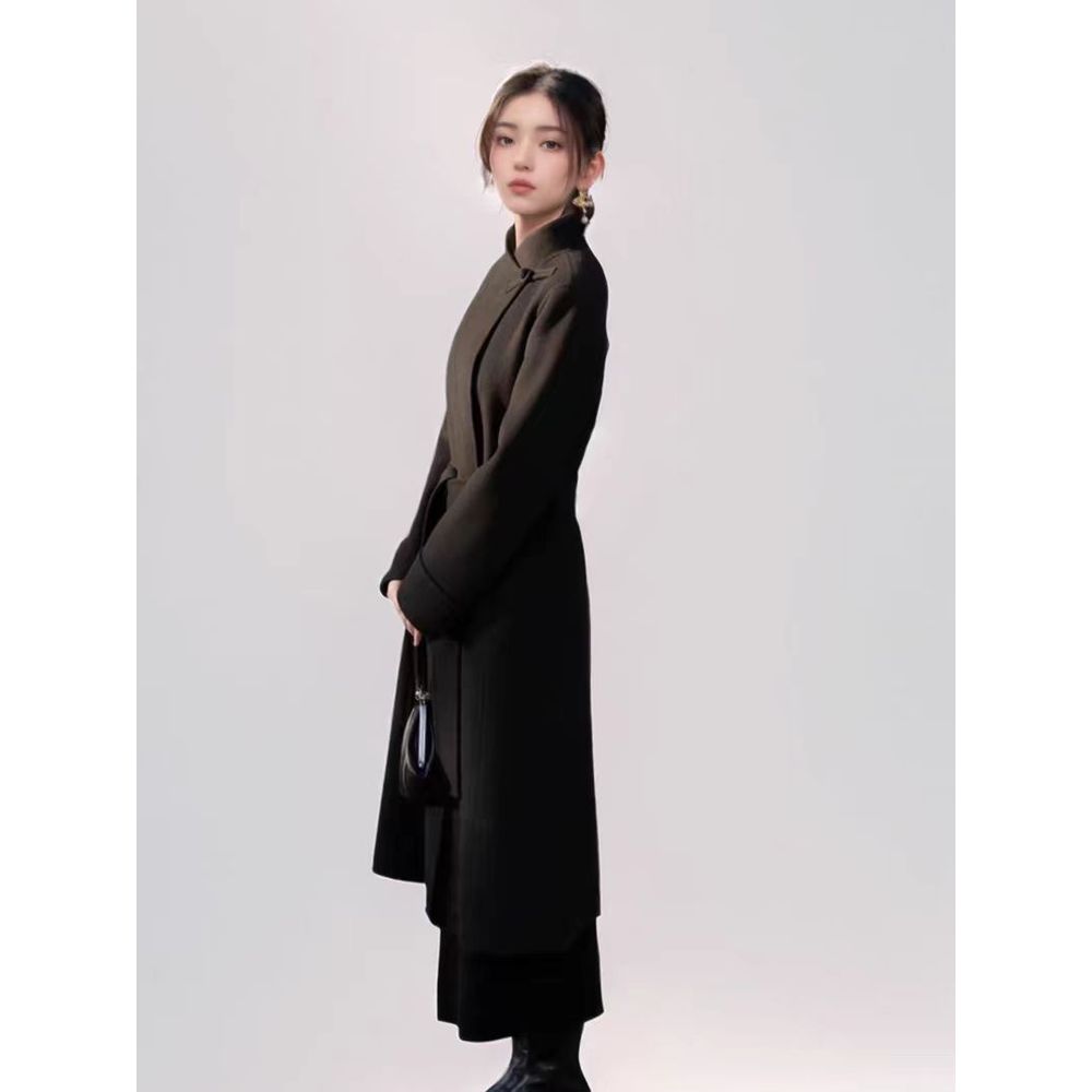 Women's Black Woolen Coat Mid-Length Woolen Jacket