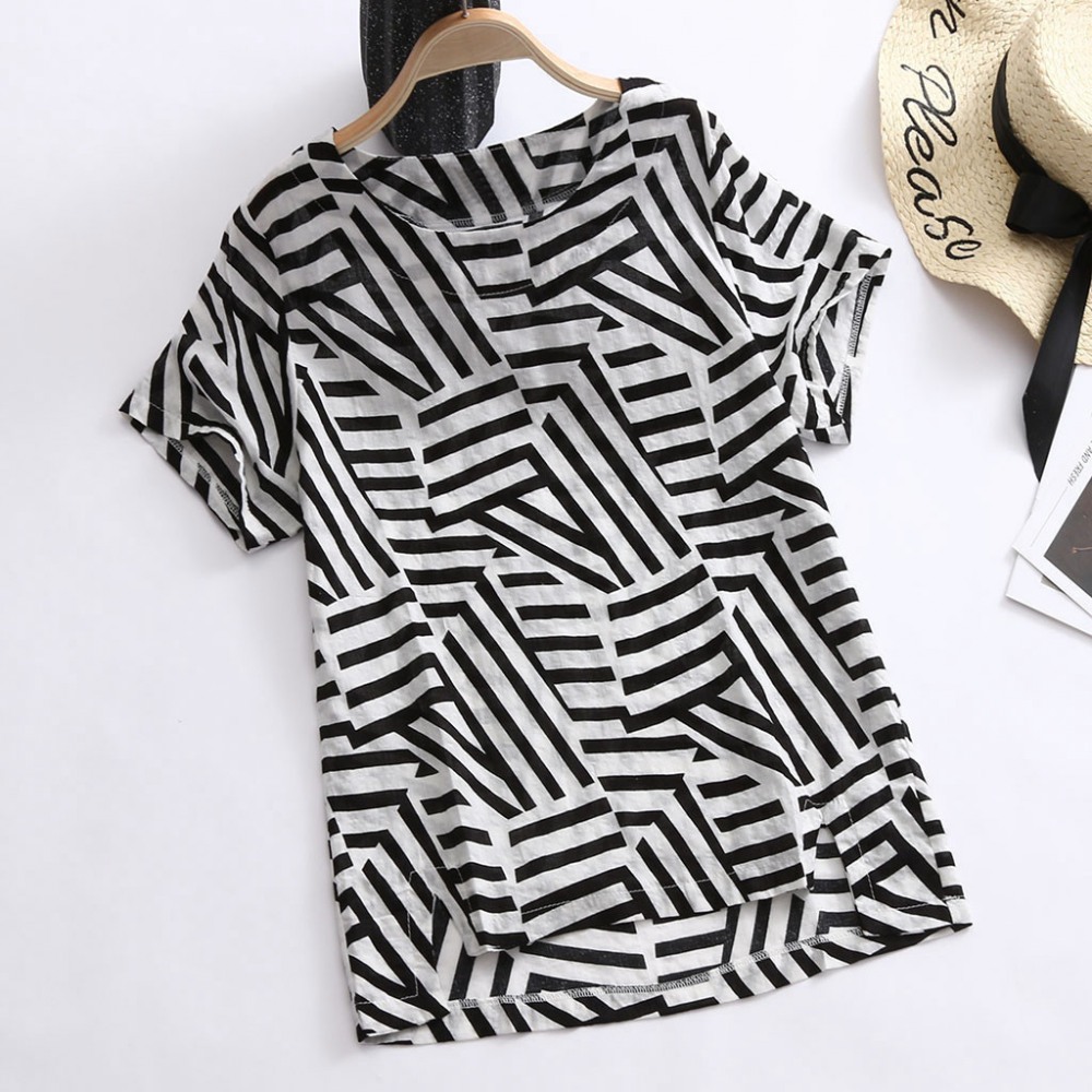 Retro Cotton and Linen Printed Short-Sleeved Casual Loose T-Shirt Women
