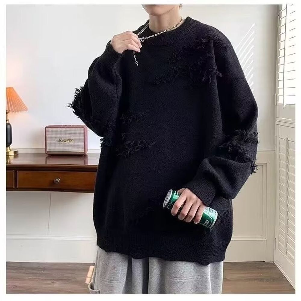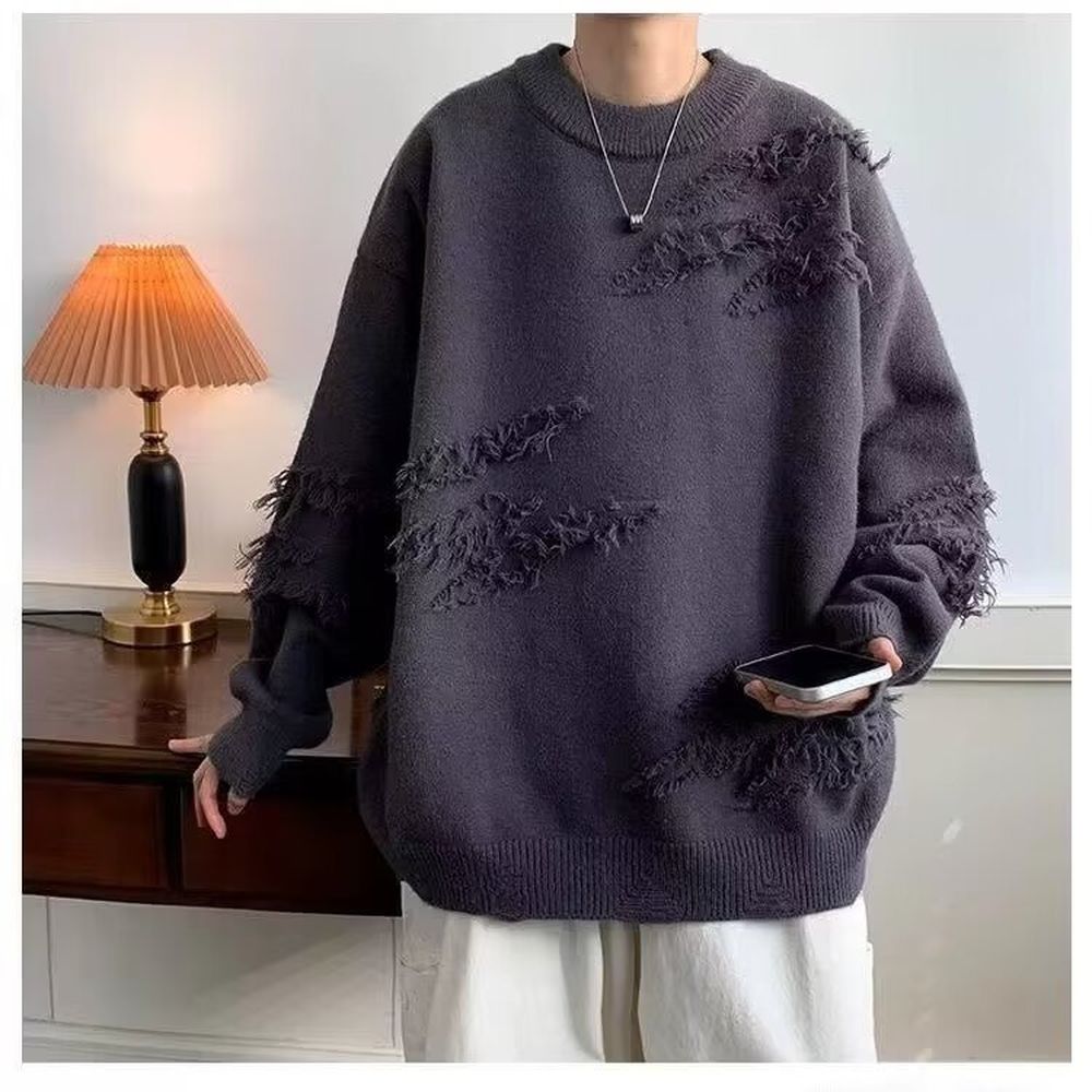 Men's Crew Neck Sweater Fleece-lined Thick Loose Knitwear