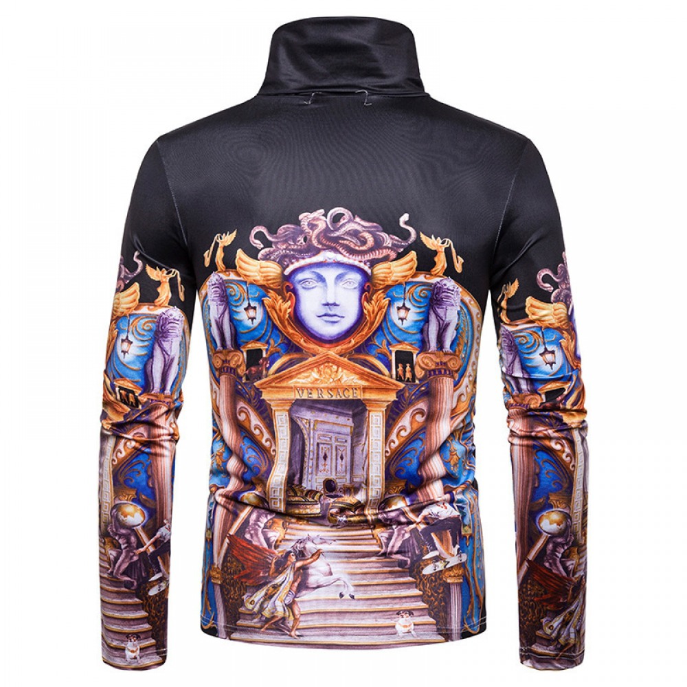 New Men's Large Size 3D Retro Castle Print High Neck Long Sleeve T-Shirt Bottoming Shirt