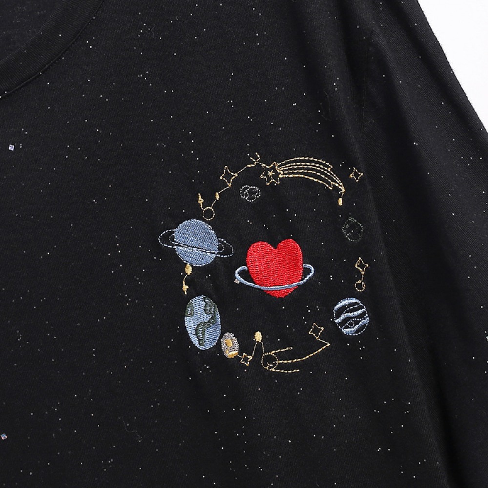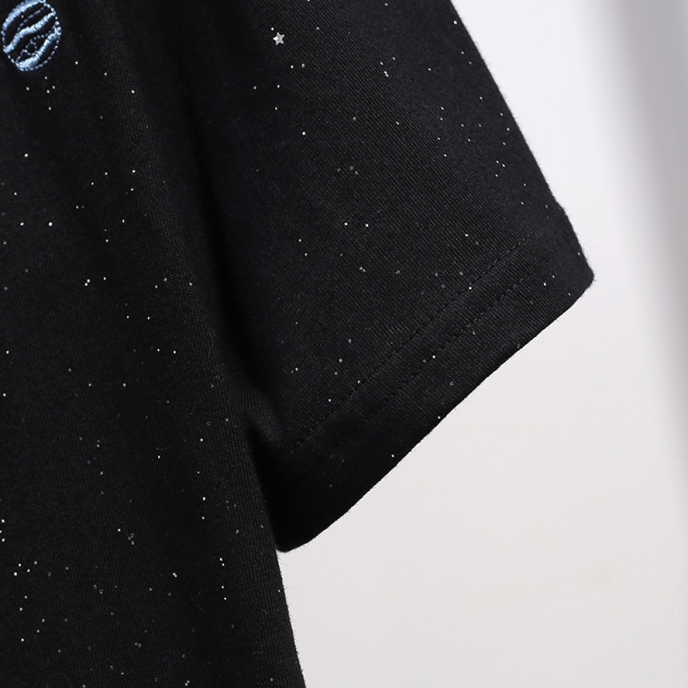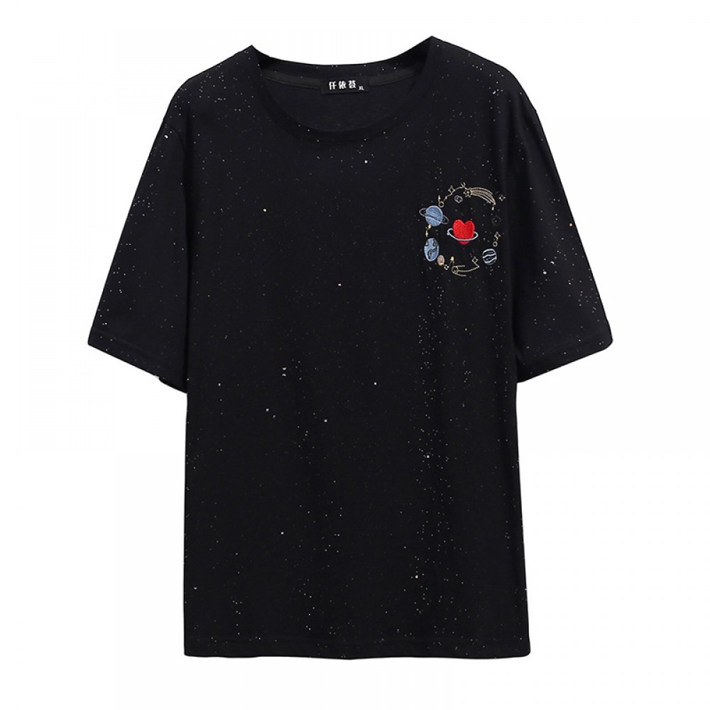 Round Neck Fat Sequined Top New Oversized Women's Loose Embroidered Short-Sleeved T-Shirt