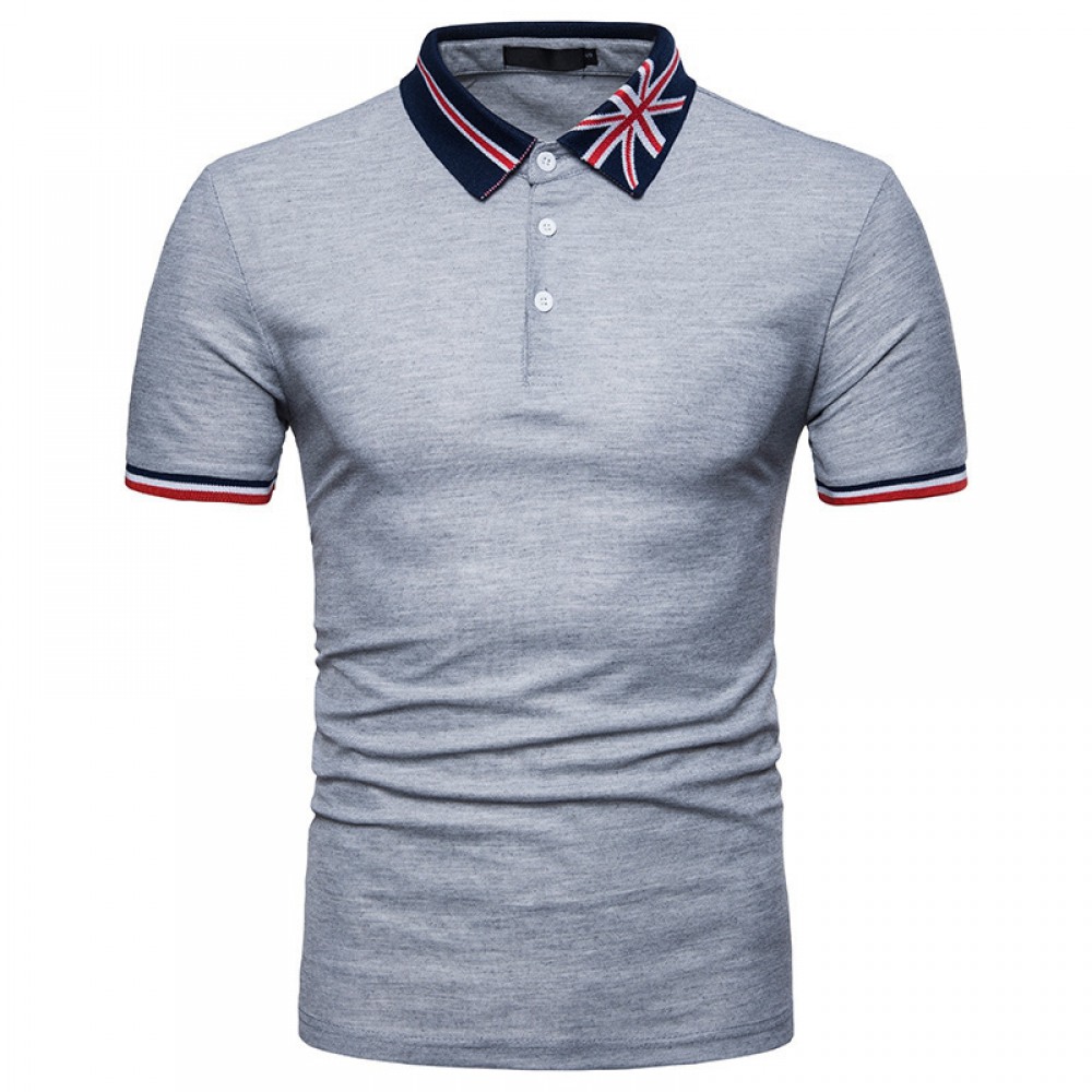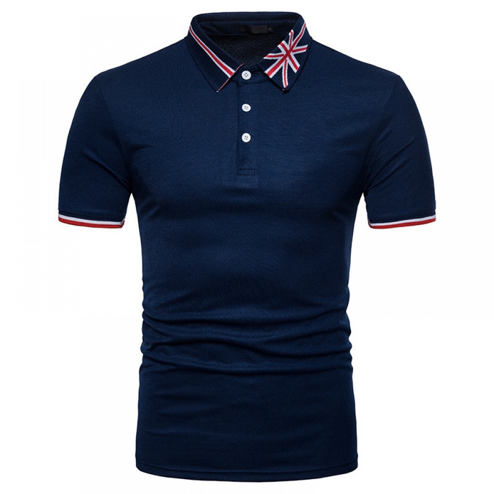 Summer Business T-Shirt Men's Short-Sleeved Young and Middle-Aged Pattern Lapel Shirt Solid Color